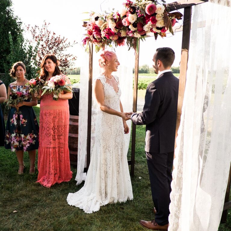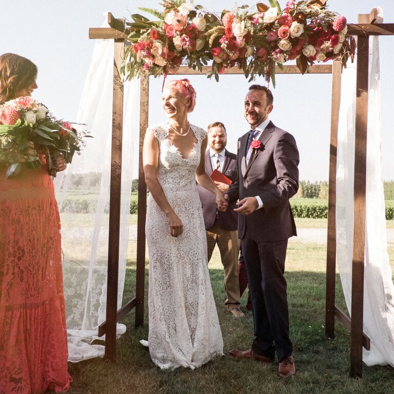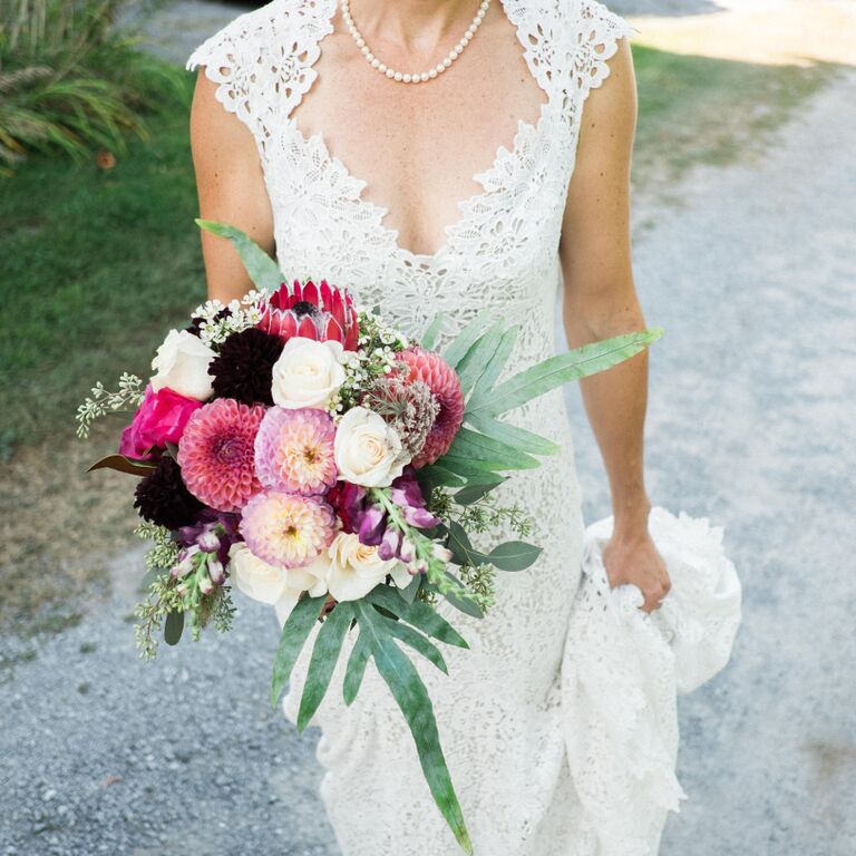 The event took place at L’Orpailleur Vineyard in the Eastern Townships. The flowers were going to be used as the couples primary décor. They wanted to stay true to the natural setting of the venue all while capturing the hearts of their family and friends to create a romantic setting. The color palette that they were inspired by were blushes, pinks, burgundy’s and whites. Textures were also a key part of this design, using complimentary greens and large protea’s as a primary focal point added that wow component.