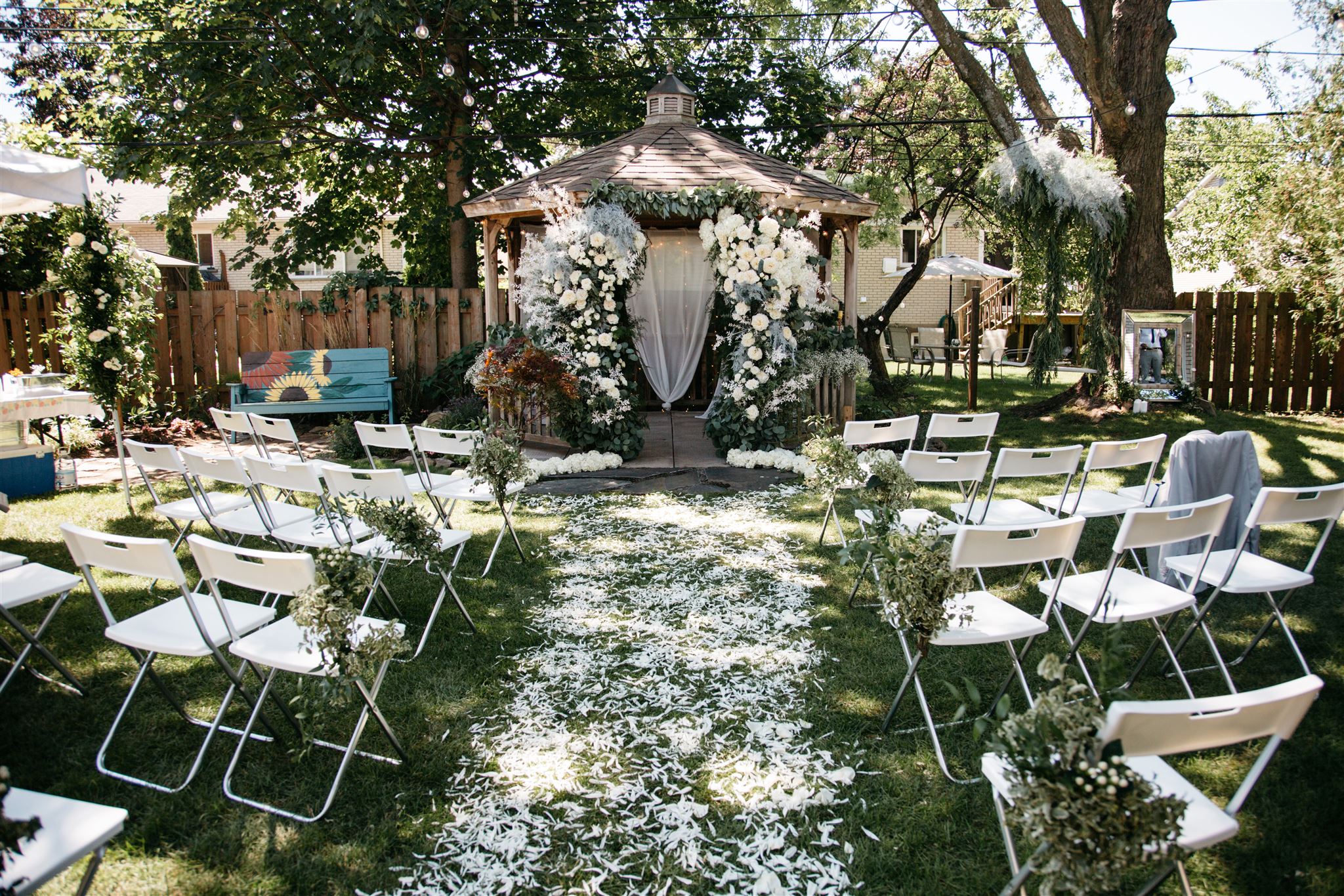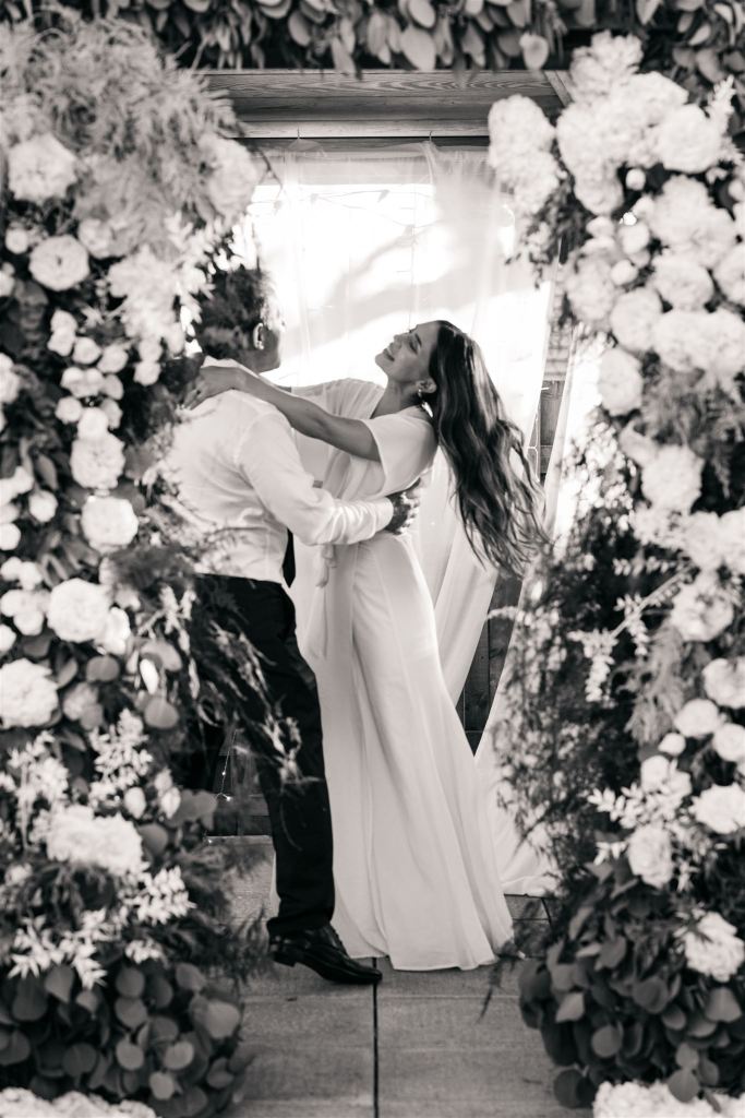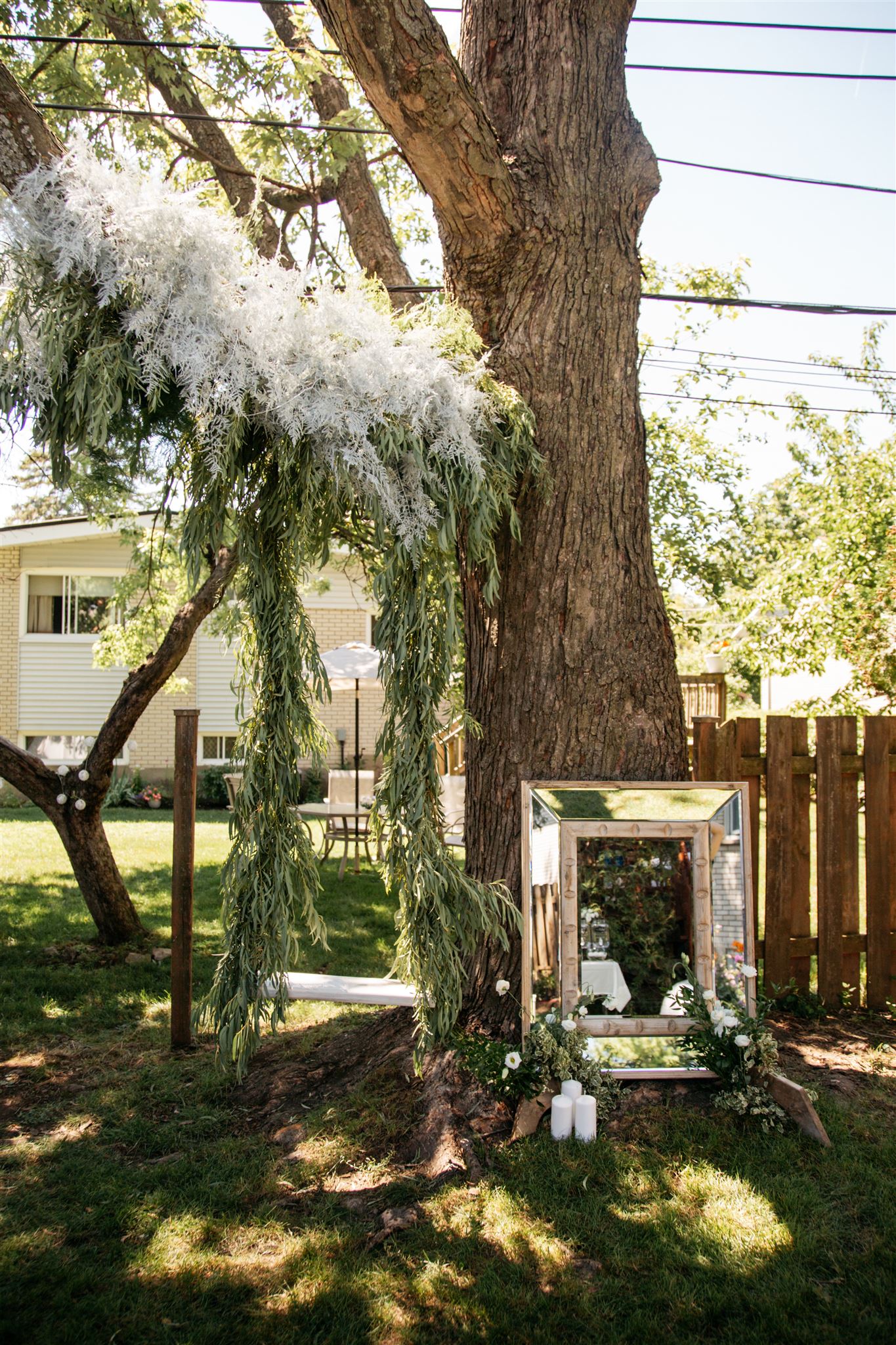 The pièce de résistance for the event (aside from Zofia of course) by far was the ceremonial arch, although the cedar hedge was no small feat either. This piece was truly a labor of love. The base of the arch was made up of curly willow that I weaved together by hand, while creating key junction points to place the main focal floral pieces. The structure was further enforced with seeded eucalyptus and magnolia and from there inspiration just took off, and this 4 ft long ceremonial masterpiece was created. This piece served multi functions for the bride and groom, in that after the ceremony it was used as the floral runner of their sweet heart table.