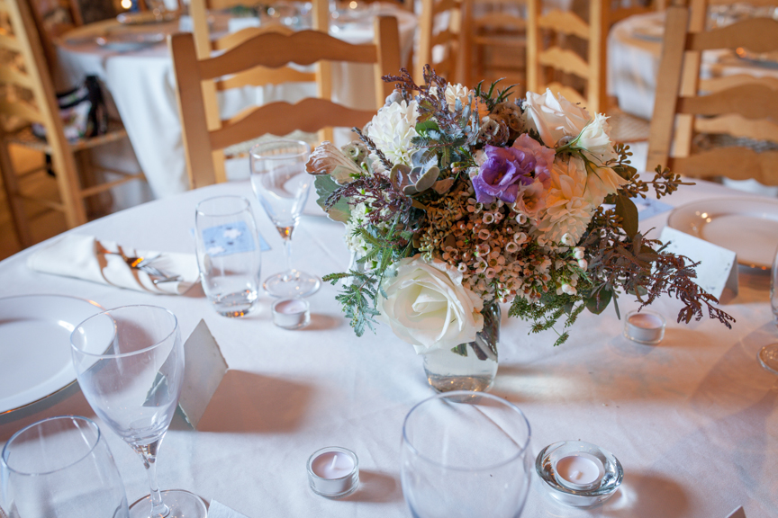 The event took place at L’Orpailleur Vineyard in the Eastern Townships. The flowers were going to be used as the couples primary décor. They wanted to stay true to the natural setting of the venue all while capturing the hearts of their family and friends to create a romantic setting. The color palette that they were inspired by were blushes, pinks, burgundy’s and whites. Textures were also a key part of this design, using complimentary greens and large protea’s as a primary focal point added that wow component.